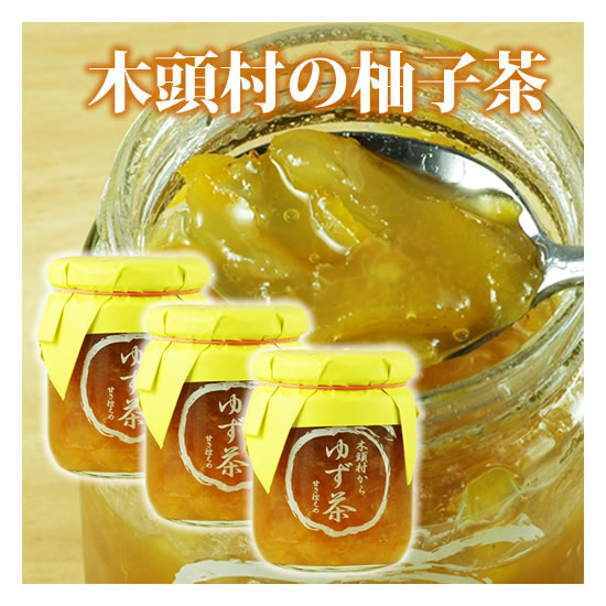 柚子日本一の里として知られる徳島県木頭村産の無農薬柚子とグラニュー糖、はちみつだけで作った素朴なゆず茶です。ビタミンCが豊富でゆず特有の芳香とほのかな苦味が特長。原材料:柚子(徳島県木頭村産)、砂糖、蜂蜜(岐阜県産)内容量:270g×3個柚子茶は、もともと韓国の家庭で愛用されており、美容と健康の飲料として人気が高まり、韓国エステの店などで利用されるうちに日本でも注目されるようになりました。柚子茶は、柚子を丸ごと刻み砂糖や蜂蜜と混ぜて煮込んだものを言い、お湯に溶かして飲むので「柚子茶」という名前が付きました。韓国の柚子茶は糖度が高めで、ジャムのように使うには甘すぎるものが多いようです。木頭村の柚子茶は甘さを控えめにし、種も取り除いており、そのままジャムのように使うことも出来ます。また柚子の色や香りを残すために煮詰める時の温度を抑えており、果実の中で最も多く含むビタミンCを残すようにしています。無農薬柚子とグラニュー糖、はちみつだけで作った柚子茶は、香り高く柚子特有のほのかな苦味を感じる素朴な味わいがします。 一番のおすすめはお湯に溶かして飲むホットな柚子茶。夏は冷水に溶いて柚子ジュースもおすすめ。ジャムかわりにトーストにぬったり、紅茶やヨーグルトに加えたり、焼酎に入れて柚子ハイにしたり、パウンドケーキやシフォンケーキなどにも。 徳島県の秘境「木頭村」は、98%が森林におおわれた自然の宝庫。木頭村では昔から無農薬、自然栽培の実生の柚子が栽培されてきました。一時ダムの開発で湖の底に沈みそうになりましたが、村民あげて反対し手つかずの自然が残ることになりました。今や木頭村の柚子は 「日本一と賞賛される」までになりました。