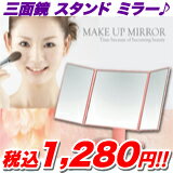 ★コンパクト 三面鏡,コンパクトミラー,メイクアップミラー★☆三面鏡 卓上,卓上ミラー,化粧 ミラー 鏡 卓上,スタンドミラー☆≪ホワイト ピンク≫【あす楽対応】【11月レビュー投稿超特価!税込1,980円⇒税込1,280円!】