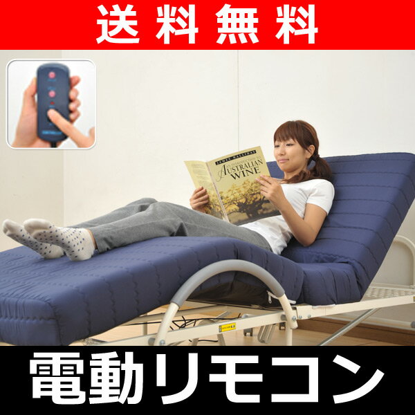 ●本体サイズ:幅98×奥行205×高さ49cm 重量45kg●材質、本体:スチール(エポキシ樹脂塗装)、マットレス:コイルスプリング、パームパッド●原産国:中国●組立品です●組立時間:約20-30分●折りたたみ時:幅98 奥行53 高さ111cm●マットサイズ:幅90 長さ198cm●マット面高さ:40cm●マット厚:12cm●消費電力:33W●電源スイッチ付リモコン手元のリモコンを押すだけで、楽々リクライニング!ギアと違い、無段階のリクライニングで、あなた好みの角度に設定可能最初に背部が上がり、途中で連動して脚部が上昇ボンネルコイルスプリングを使い、ウレタンのみのマットレスよりもヘタリに強い構造合計308個のボンネルコイルスプリング使用カバーはシンプルなキルティング加工使わない時は手元で電源を切れる安心構造簡単操作で楽々リクライニング今なら嬉しい専用ポケット付き! マットレスの下に人がもぐりこんだりすることを防ぐ安全ネットを装備モーターの力が逃げる構造になっているので、万が一マットとフレームの間に身体が挟まっても負荷が大幅に軽減ベッドが不意に折りたたまれたり、広がったりすることを防止するストッパーピンは左右2ヵ所に付属当社のベッドは、JIS基準に準じた強度試験を行っております。その結果から、目安として、一人用ベッド(シングル、セミダブル)について、静止した状態の荷重で約90kgにも耐えうる構造になっています。 折りたたむと53cmと、とてもスリムになります来客時などに便利です モーターやスプリングで重量のある電動ベッドそれでもよりスムーズに折りたたみ作業をやっていただけるための3つの工夫折りたたみ補助のバネを従来の2本から4本に増量キャスターの直径を10mm大きくし、よりスムーズな動きを実現持ちやすいアーチ状のサイドガードベッドテーブルキュービックテーブル天然木サイドテーブルワゴン